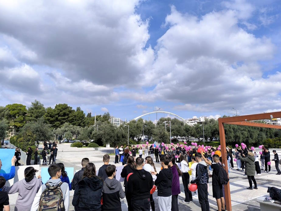 Τα παιδιά κράτησαν πανό και χαρτόνια με μηνύματα κατά της βίας στα σχολεία και του εκφοβισμού, τονίζοντας παράλληλα και την αξία του να αναδεικνύονται αυτά τα περιστατικά και τα θύματα να λαμβάνουν ουσιαστική στήριξη.