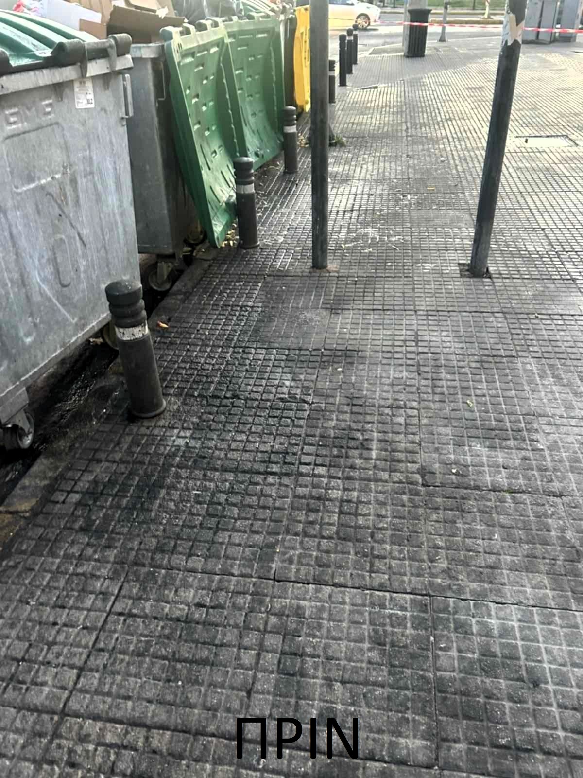 Συγκεκριμένα, το προηγούμενο διάστημα πραγματοποιήθηκε καθαρισμός σε βάθος στο πεζοδρόμιο επί της Ιεράς Οδού και Αγίας Λαύρας (περιοχή Ρακάδικα), παραπλεύρως κάδων απορριμμάτων, όπου οι ρύποι ήταν ιδιαίτερα επιβαρυμένοι και απαιτούσαν εξειδικευμένη αντιμετώπιση.