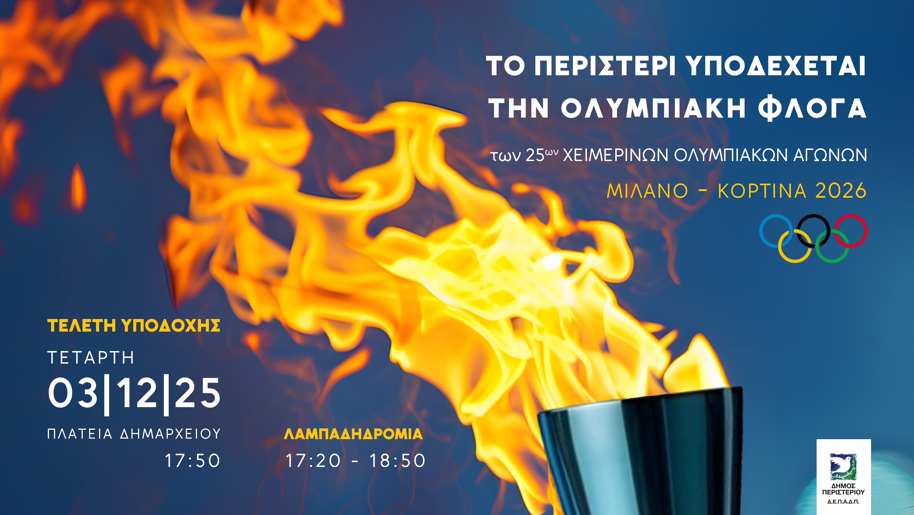 της Ολυμπιακής Φλόγας, την Τετάρτη 3 Δεκεμβρίου 2025 και ώρα 17:15, στην