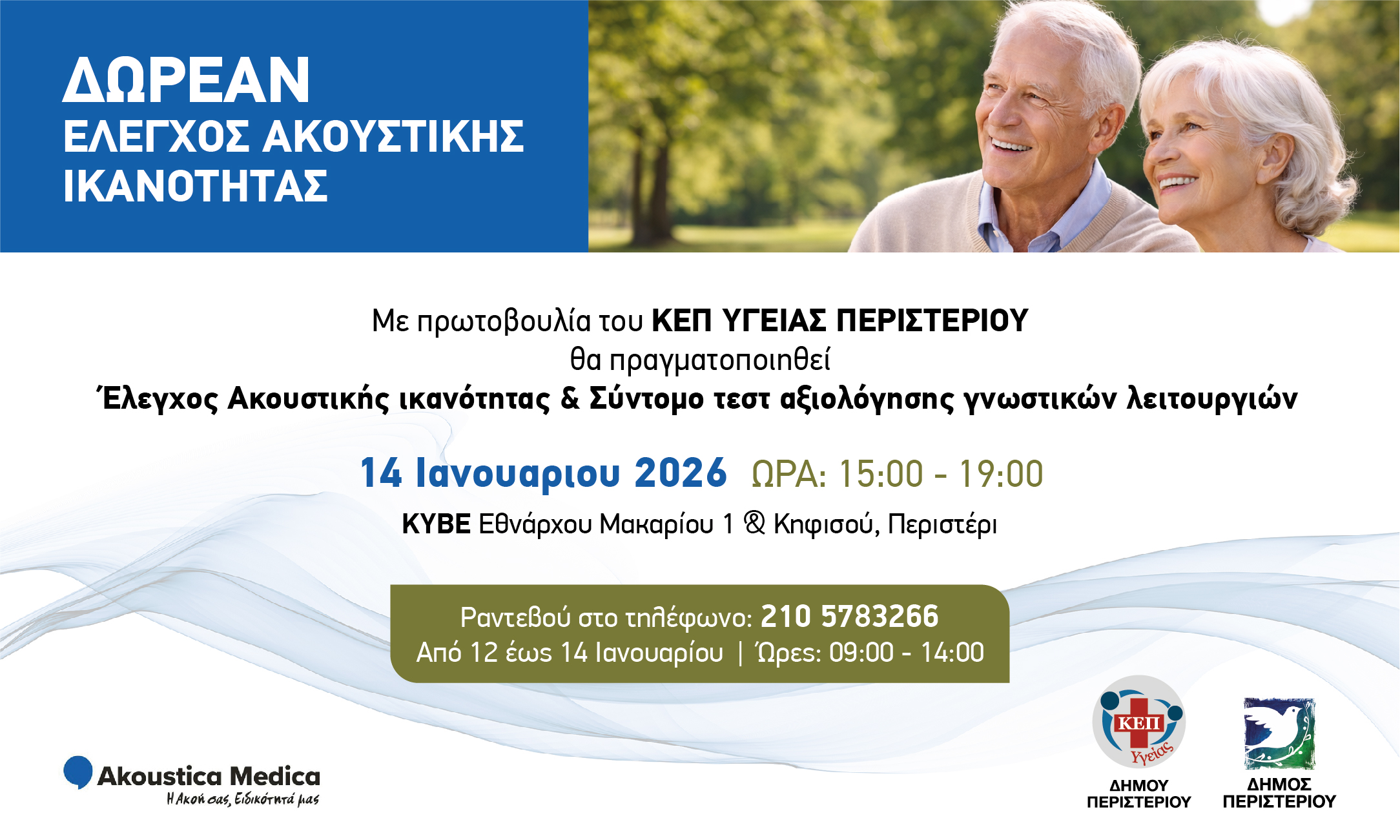 θα πραγματοποιηθεί Δωρεάν Έλεγχος Ακουστικής Ικανότητας, σε συνεργασία με
